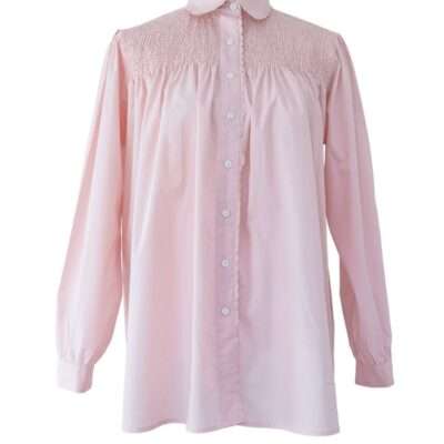Gesmokte Bluse „Sydney“ mit Muschelkante und Hemdkragen