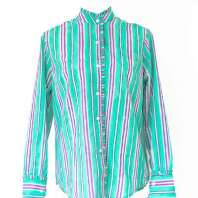Bluse „London“ Stehkragen mit Rüschenkante und Manschette mint & lila