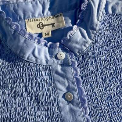 Gesmokte Bluse „Sydney“ mit Muschelkante, Stehkragen und